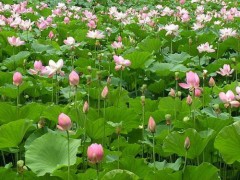 荷花是水生植物,性喜相对稳定的平静浅水,湖沼、泽地、池塘是其适生地。荷花的需水量由其品种而定,大株形品种如古代莲、红千瓣莲相对水位深一些,但不能超过1.7米.中小株形只适于20~60厘米的水深.同时荷花对失水十分敏感,夏季只要3小时不灌水,缸栽荷叶便萎靡,若停水一日,则荷叶边焦,花蕾回枯.荷花还非常喜光,生育期需要全光照的环境.荷花极不耐荫,在半荫处生长就会表现出强烈的趋光性.野生种藕的生命力强,适应环境广,当年可开花。荷花色艳、花香、花期长,是水面绿化、制景工程的首选。我方可施工种植、管理。