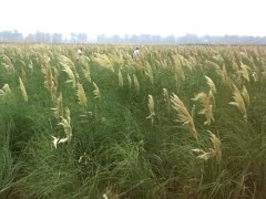 茎极狭,长约1m,宽约2cm,下垂,边缘具细齿,呈灰绿色,被短毛。圆锥花序大,雌花穗银白色,具光泽,小穗轴节处密生绢丝状毛,小穗由2-3花组成。雄穗为宽塔形,疏弱。花期9-10月。