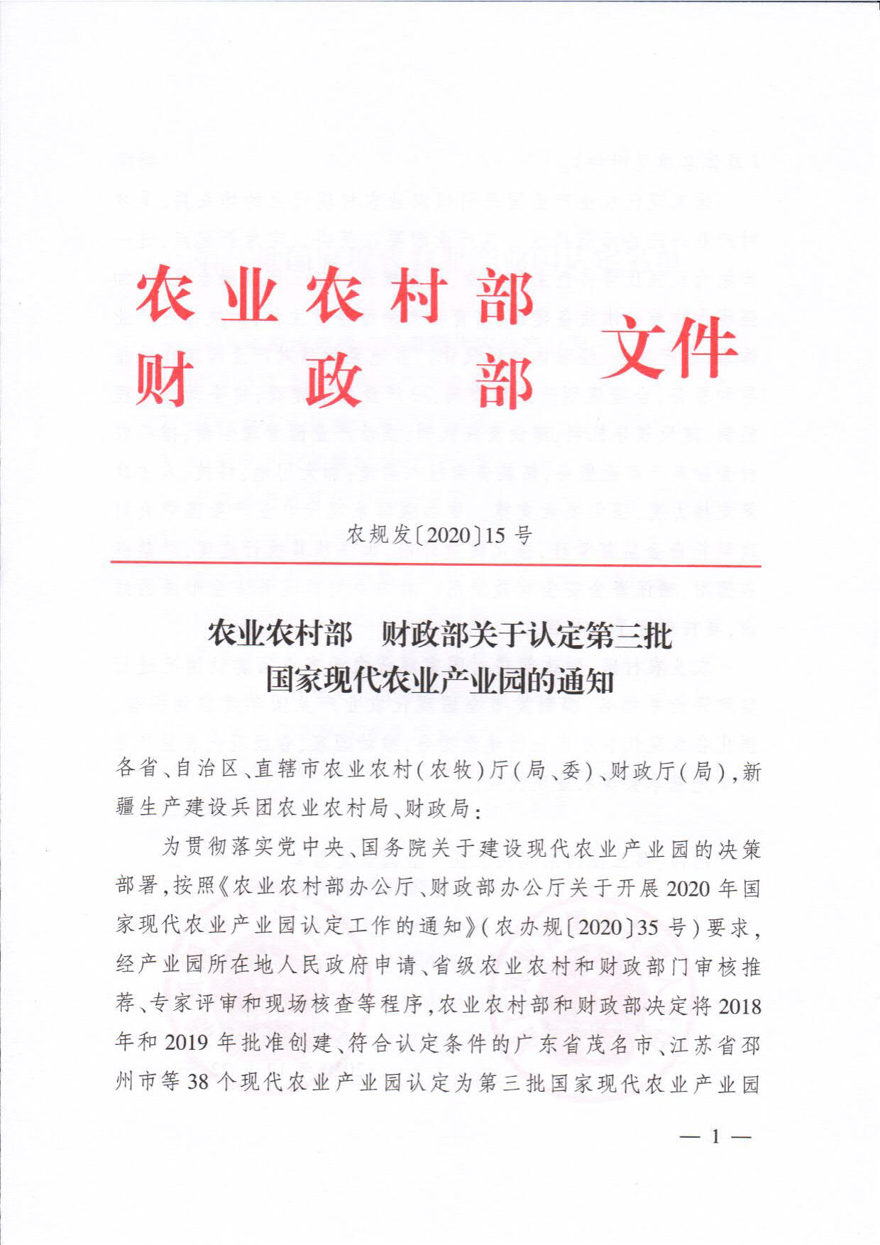 首页 > 荣誉资质 > 国家现代农业产业园文件