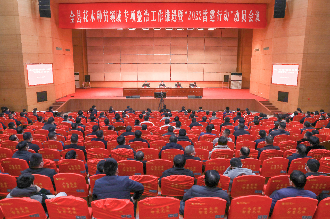 会议分两个阶段进行,第一阶段,县委副书记、县政协主席张莉萍主持会议。第二阶段,县委常委、宣传部部长姜若鸣通报了全县花木种苗 “2022猎鼠行动”开展情况,并对下一阶段工作进行安排部署。副县长张岩主持会议。会上,宣读了《2022年度花木种苗领域电商“红黑榜”》,通报了《2022年度花木种苗领域专项整治工作追责问责情况》。相关单位围绕花木种苗长效监管进行了发言。与会人员共同观看了花木种苗专项整治宣传片《中国花谷 诚信花开》。