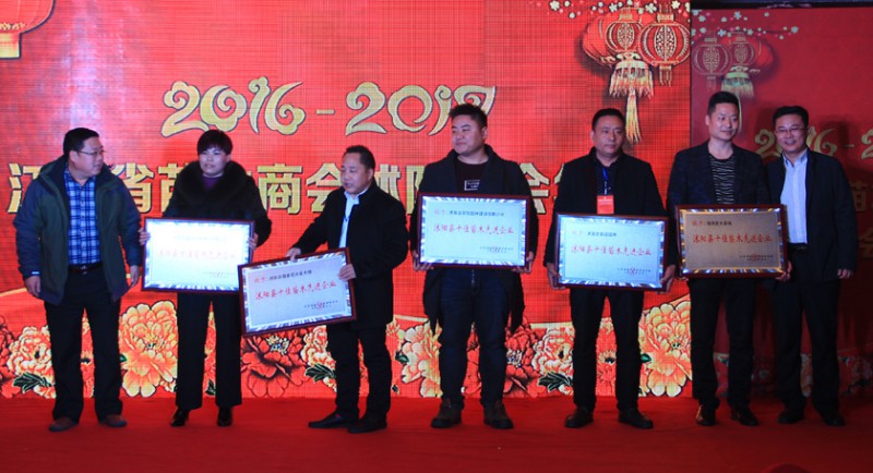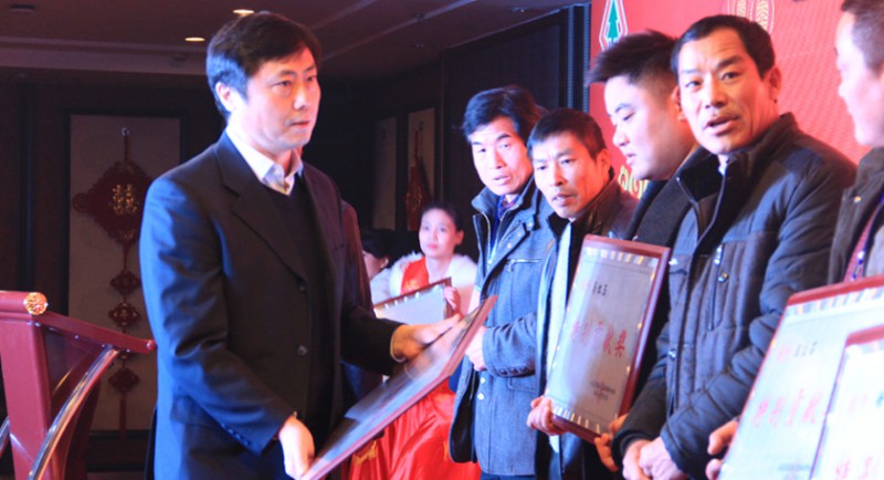 颁奖仪式:江苏省苗木商会会长为获奖者颁奖