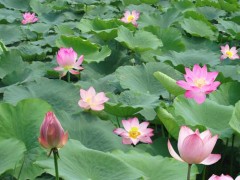 荷花又称“莲花”、“水芙蓉”。根茎肥壮,长圆柱形,里面有许多条管形空腔。茎上有许多节,根状茎横生在浅水的泥里,又称作“藕”。荷花有红色、粉红色、白色等,有清香。花托呈杯状,里面有十几个蜂窝式的圆孔,每个孔内有一粒坚果,叫莲子。藕可以作蔬菜,莲子是营养丰富的食品;叶、花梗、莲心、莲须可入药。所以说荷花是上天赐予我们一个珍贵的礼物。